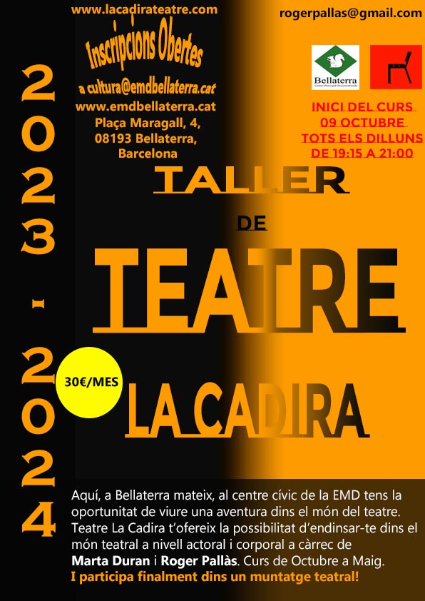 Després de l’èxit del Taller de teatre La Cadira de la temporada 2022/2023 amb la finalització del muntatge de text propi l’Organització, comença ara un nou repte amb la la temporada 2023/2024!